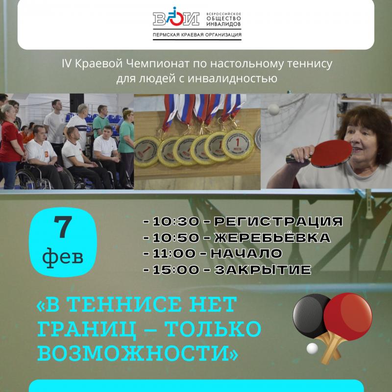 Приглашаем спортсменов на IV Краевой Чемпионат по настольному теннису для людей с инвалидностью «В теннисе нет границ – только возможности»