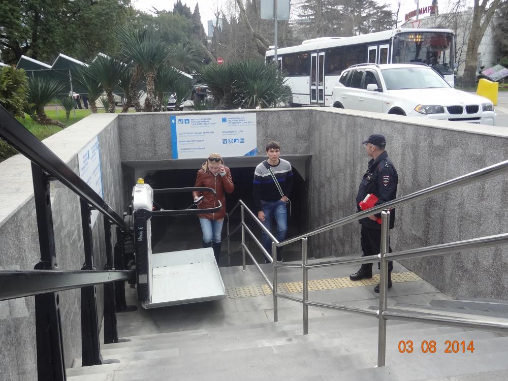 Вера Ивановна отметила, что в старых корпусах санатория перед Олимпиадой и Паралимпиадой при реконструкции сделаны пандусы, в том числе и внутри зданий. Но она считает, что олимпийские объекты для проведения паралимпиады и городская среда Сочи имеют разную степень доступности. - Действительно, хорошо организованы маршруты передвижения для инвалидов на колясках до всех объектов и внутри объектов, - рассказывает председатель. - Городские автобусы низкопольные, с откидным или выдвижным пандусом. Водители обучены работе с инвалидами. Мы проехали на автобусе — до Адлер-вокзала и дальше ехали на электричке, что было гораздо быстрее. Персонал вокзала и электричек знал, как обслуживать инвалидов, что сразу было заметно. Платформа вровень с полом, в первом и втором вагоне выносные пандусы и специальные места для инвалидов на колясках. Вера Ивановна интересовалась, как организуются спортивные соревнования, как оборудованы спортивные залы, как принимают и размещают болельщиков. Оказалось, что везде есть туалеты для инвалидов на колясках. Очень удобно оборудованы уличные туалеты. Все спортивные объекты доступны. Но на ее экспертный придирчивый взгляд в кёрлинговом центре достаточно «ляпов» — на входе многоярусный пандус, похожий на серпантин, когда можно было поставить подъемник. Заезд на пандус начинался с небольшого барьера и покрыт скользкой плиткой. В дождь по этому пандусу было трудно подниматься. Что касается города Сочи, то его территория — это пересеченная местность, где создавать доступную для инвалидов среду сложно. В центре Сочи везде обозначены тактильные пути следования для незрячих людей. Однако материал для их исполнения выбран неудачно: излишняя выпуклость бороздок и других элементов создает затруднения для других пешеходов. В городе на лестницах в подземном переходе установлены подъемники. Но на подъемнике нет вызывной кнопки. То есть, если подъемник находится внизу, а ты вверху, воспользоваться подземным переходом не можешь. - Во время проведения паралимпиады там дежурили волонтеры, они мне и помогли, а после проведения игр, кто это будет делать? - недоумевает Вера Ивановна. - У подъемника имелся небольшой откидной бортик, по которому коляска съезжает на поверхность перехода. Так вот бортик идет с подъемника не горизонтально поверхности, а под углом градусов 30. Выяснилось это поздно, когда я крутанула колеса и полетела с коляской на асфальт! Окружающие перепугались. В новом здании музея спортивной славы много ступеней ко входу в здание и подъемник, как в подземном переходе: он вверху, а ты ждешь внизу. Оказалось, что сотрудники музея не обучены пользоваться этим подъемником. Вера Шишкина в ходе дальнейшего мониторинга отметила обилие указателей к объектам и скамейкам для отдыха, но нашла и магазин с пандусом с недостаточной для коляски шириной площадки перед входной группой. Воспользоваться им невозможно. В итоге зафиксировала ряд мелочей: - пандус ко входу в суд оказался настолько крут, что подняться по нему на коляске просто невозможно; - ступени с неясным назначением, о которые может споткнуться незрячий человек; - лестницы без перил; - загадочный пандус в никуда; - пандус, похожий на горнолыжную трассу; - отсутствие поручней, бортиков, нужных, чтобы инвалидная или детская коляска не съехала под уклон. Предс